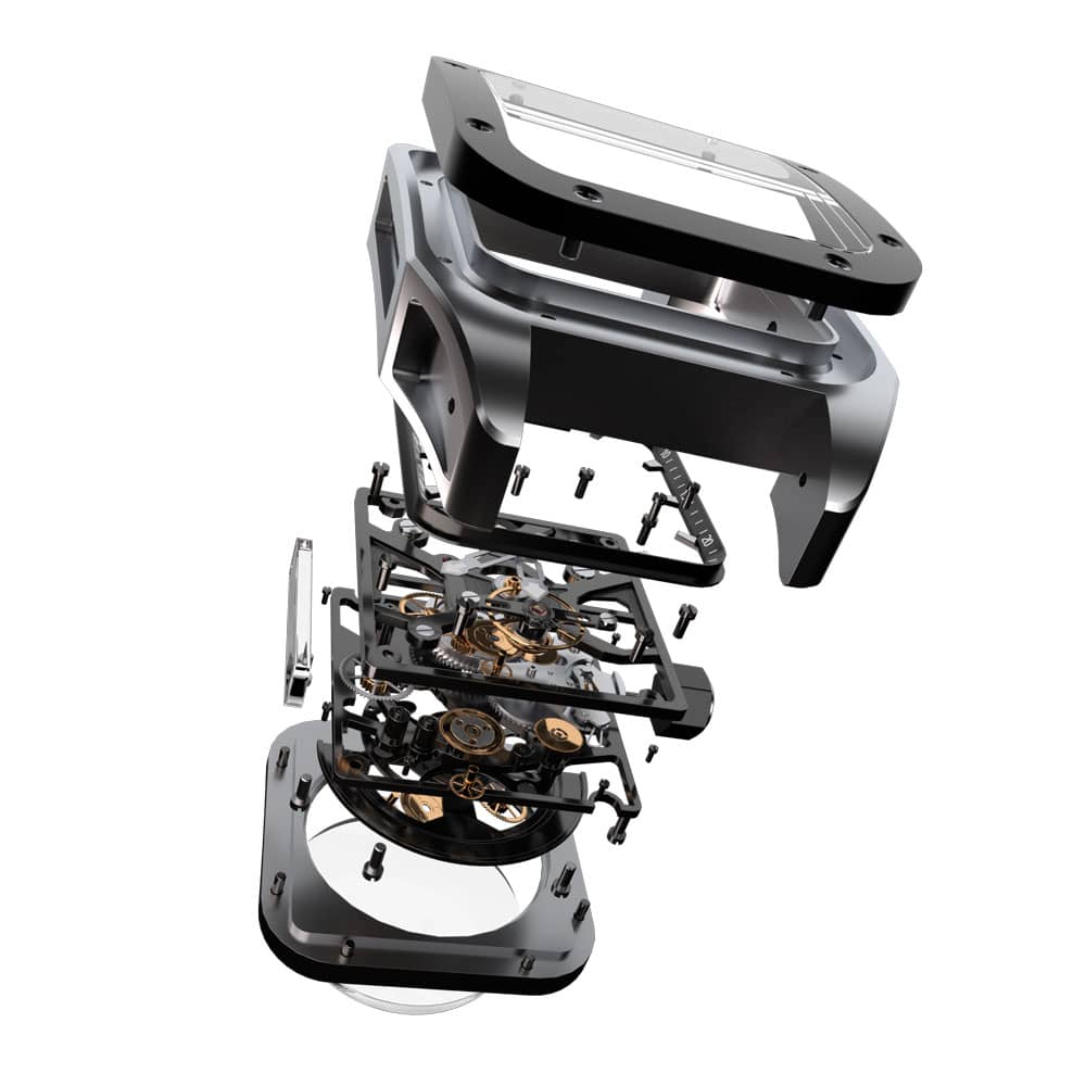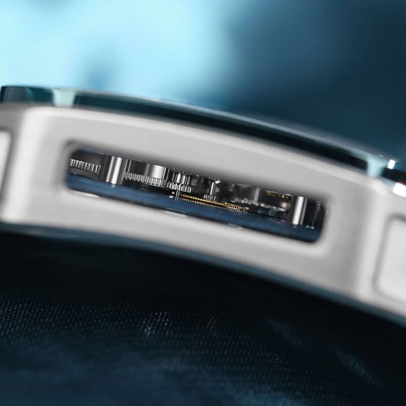 We're thrilled to introduce our first-ever square case, made from lightweight and durable titanium with a sleek contoured design that exudes boundless energy. The STORM also features a new square-shaped hollowed-out movement, which is quite different from typical skeleton movements. This unique movement is composed of two sandwiched plates, creating a lightweight and agile structure that allows for a clear view of the inner workings. Equipped with 21 jewels, a frequency of 28,800 bph, and a power reserve of up to 72 hours, this new automatic mechanical movement is both reliable and precise.