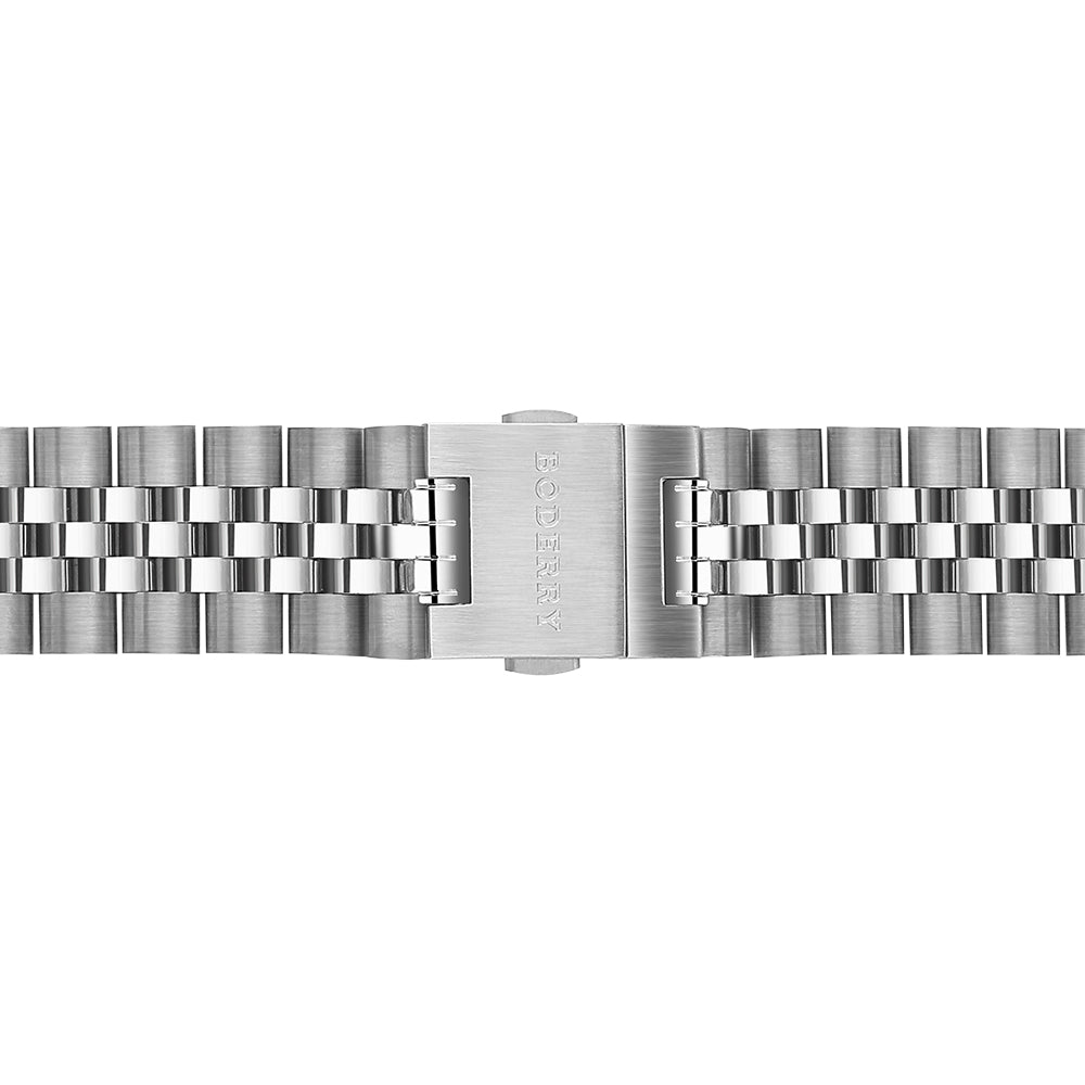 Experience excellence with our solid titanium bracelet. Crafted to perfection, the fusion of a titanium case with a titanium bracelet elevates the overall aesthetic and ensures unparalleled comfort, reducing the burden of weight. Moreover, the polished finish on the three central links of the 5-link titanium bracelet adds an elegant touch, enhancing the allure of this timepiece.